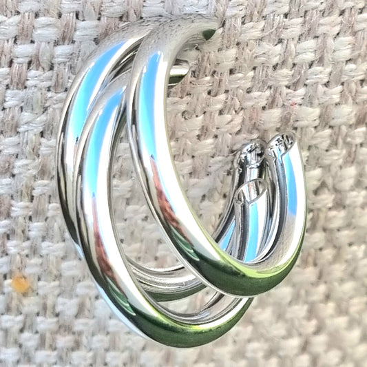 ARRACADA HOOPS TRIPLE GRUESA EN RODIO