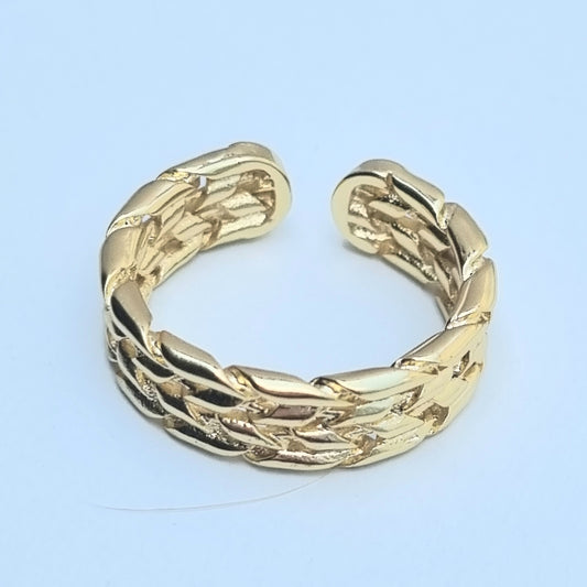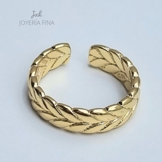 ANILLO CHAPA DE ORO AJUSTABLE TRENZADO
