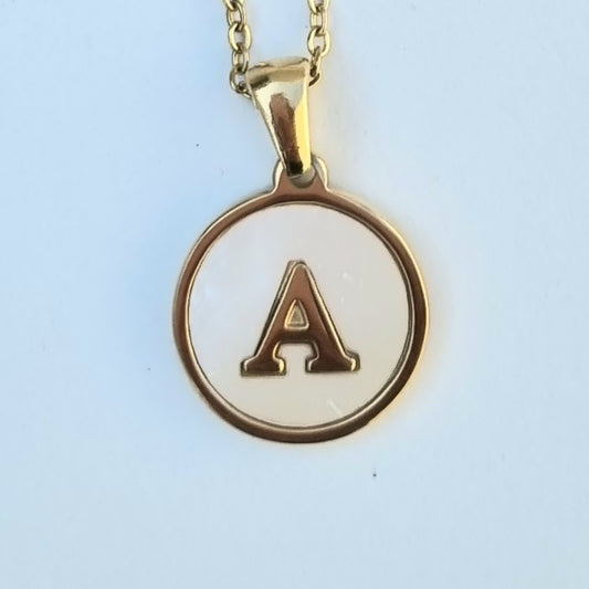 COLLAR ACERO DORADO MADRE PERLA BLANCA INICIAL