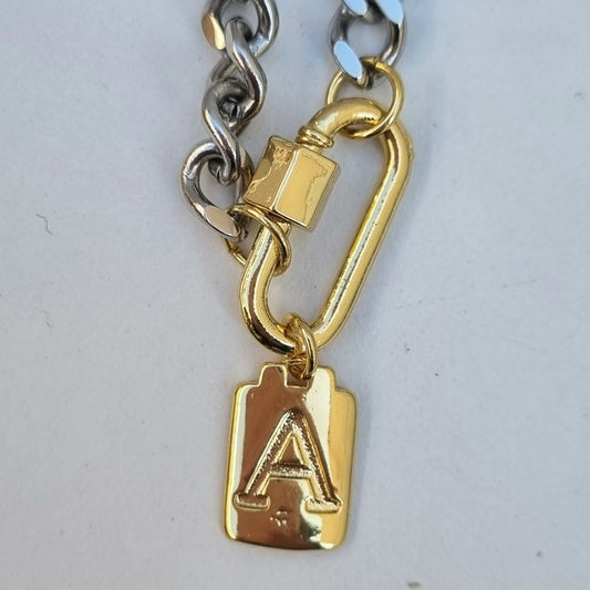 COLLAR ACERO CADENA BARBADA PLATA BROCHE CANDADO INICIAL