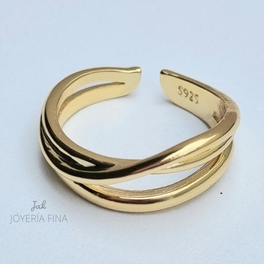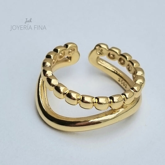 ANILLO CHAPA DE ORO AJUSTABLE ANCHO 2 CANALES
