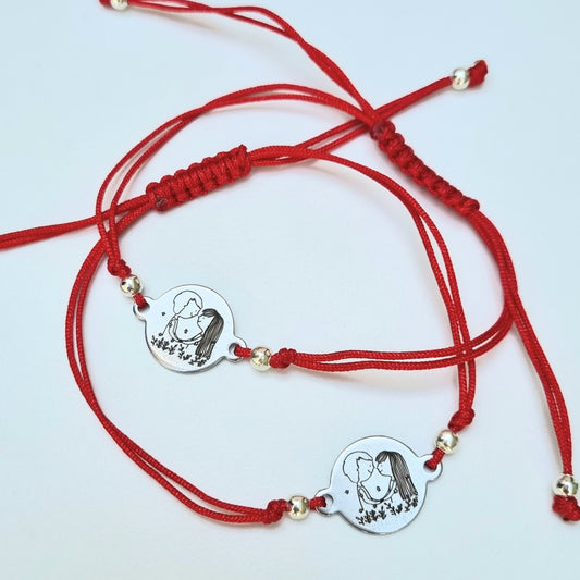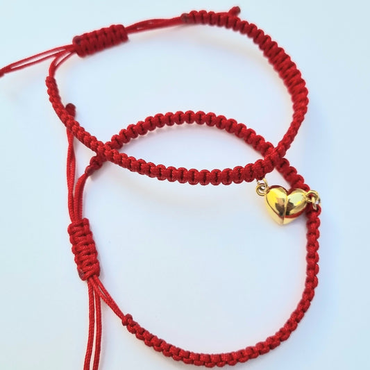 DUO DE PULSERAS HILO CON DIJE DE IMAN EN FORMA DE CORAZON